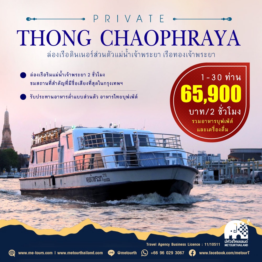 ชวนคุณเปิดประสบการณ์มื้อค่ำแบบเอ็กซ์คลูซีฟ กับการล่องเรือส่วนตัวบนแม่น้ำเจ้าพระยา ดื่มด่ำวิวแสงไฟยามค่ำคืน ท่ามกลางความสงบและบริการระดับพรีเมียม 🛥️✨